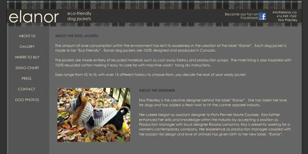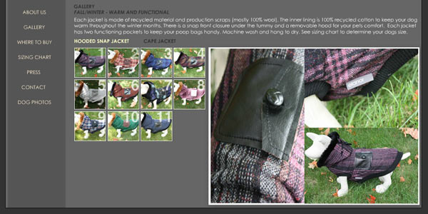 This Flash base website was built for a client who sells Eco Friendly Dog Jackets. The client was very specific about the look and feel, which was great to work with someone who had design ideas of thier own.